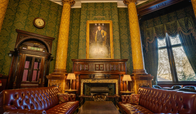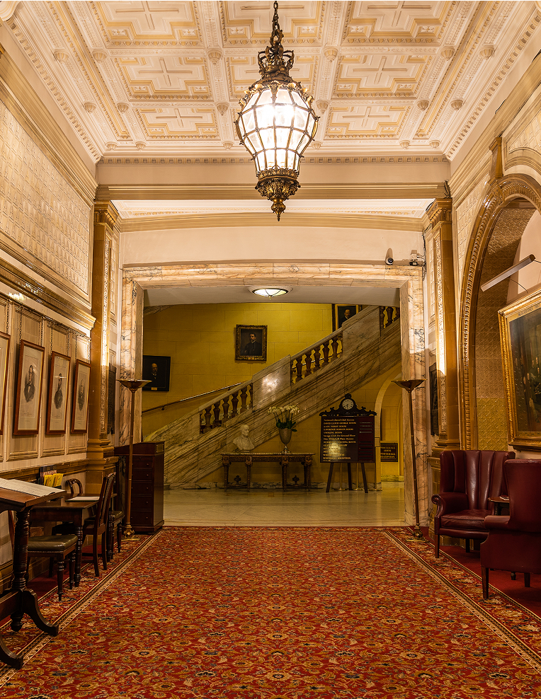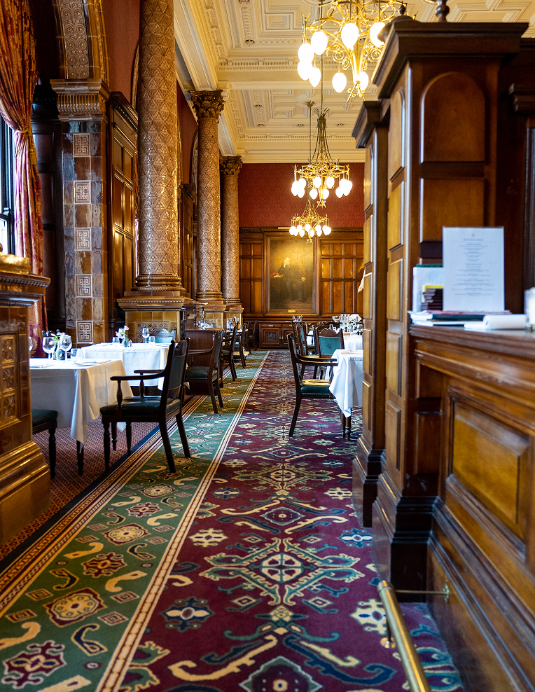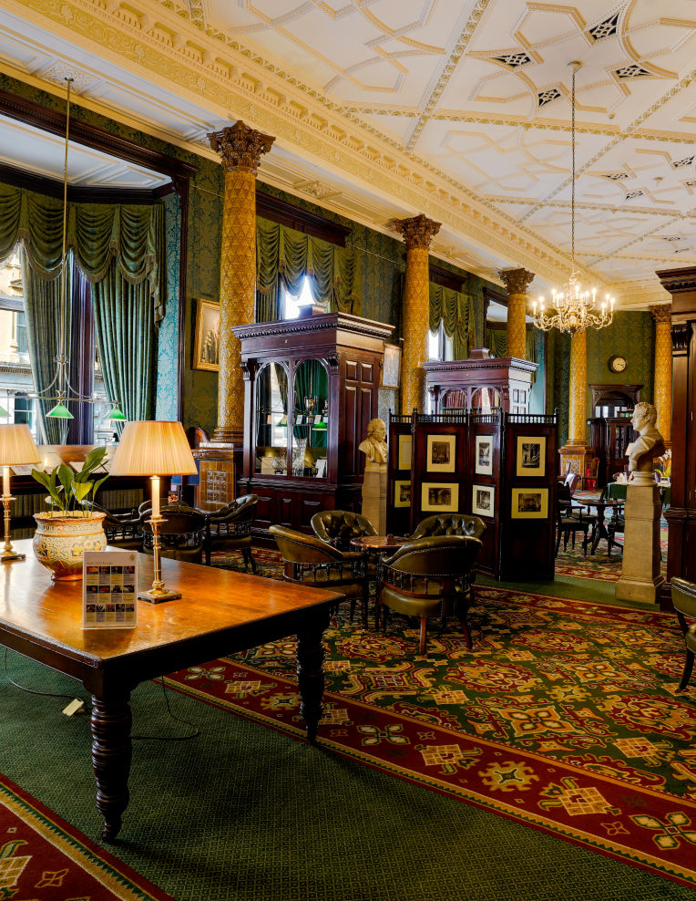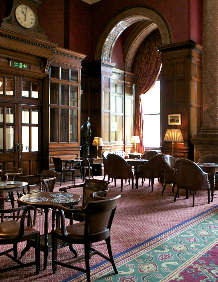 One of the most dramatic rooms in the club, the Smoking Room is not only gorgeous to contemplate, but remarkably versatile. This supremely elegant room, framed by its tile columns, has two large, adaptable spaces at either end, one of which makes the perfect location for wedding ceremonies and receptions. In the evening, the room converts neatly to accommodate a dance floor, providing space for entertainment and socialising.