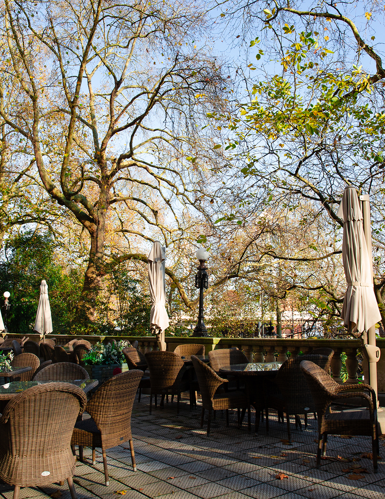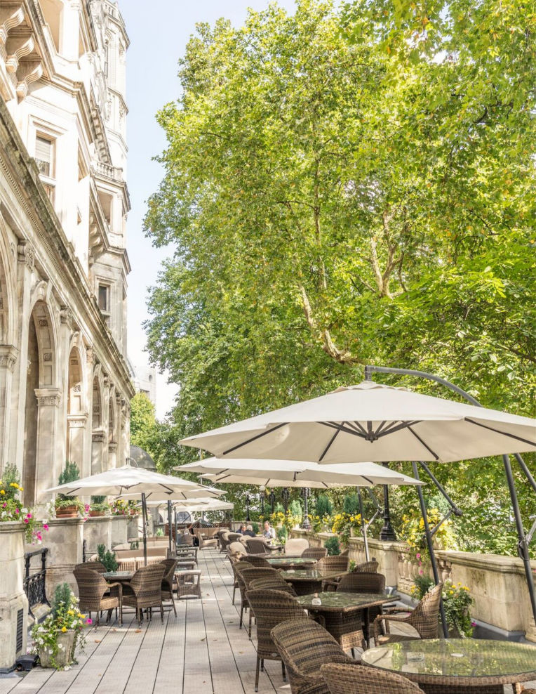 The jewel in the Club’s crown, especially in spring and summer, is surely its terrace. Unique in London, the National Liberal Club's magnificent terrace overlooks Embankment Gardens and the River Thames with views towards the London Eye and Southbank. Shaded by enormous trees, which not only provide welcome shade but also reduce the traffic noise, the terrace is large enough to accommodate up to 150 guests and offers a picturesque backdrop for photographs, socialising and receptions.